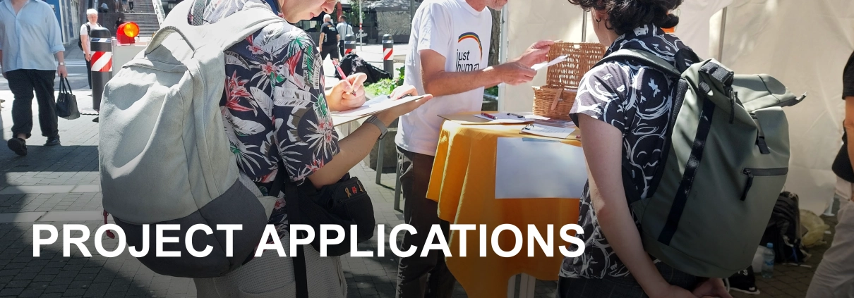 Applications may be submitted in English, French, or German by email only at kontakt@just-human.de. Submission of an application is possible at any time.