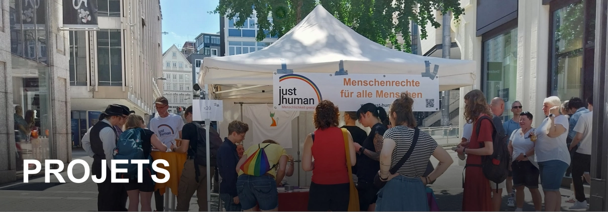 Just Human soutient les personnes touchées par la guerre, la violence, les persécutions politiques ou personnelles, l’exploitation, les causes structurelles de l’exil ou la précarité économique. Le soutien peut être apporté à toutes les étapes de la persécution ou de l’exil : dans le pays d’origine, pendant la fuite ou dans le pays d’accueil. Il vise à permettre une vie en sécurité et dans l’autodétermination.