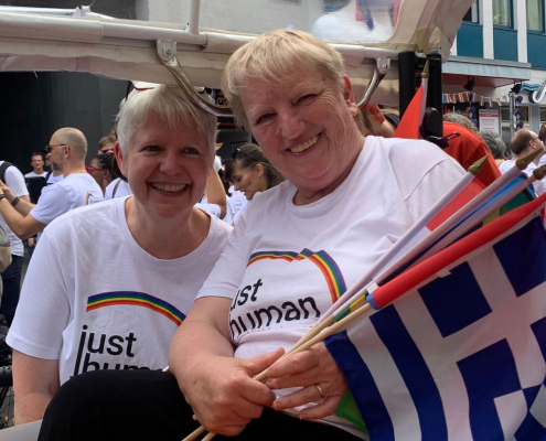 Bei der Eröffnungsfeier des CSD Pride Stuttgart 2023 war just human mit einem Infostand vertreten. Dort ergab sich die Gelegenheit mit der Schirmherrin des Stuttgarter CSD, der SPD Bundesvorsitzenden Saskia Esken, über die Situation von Geflüchteten zu sprechen. Elka Edelkott,Vorsitzende von just human, dankte ihr für die unkomplizierte Aufnahme von ukrainischen Geflüchteten und forderte dieselbe Aufnahme und dieselben Rechte für alle Geflüchteten, z.B. sofortige Arbeitserlaubnis und freie Wohnortwahl. Saskia Esken versicherte, dass diese Änderungen für alle Geflüchteten realisiert werden sollen. Als einzige Ausnahme nannte sie, dass wie bisher nur ukrainische Geflüchtete sofortigen Zugang zu Hartz IV bzw. dem neuen Bürgergeld erhalten werden.